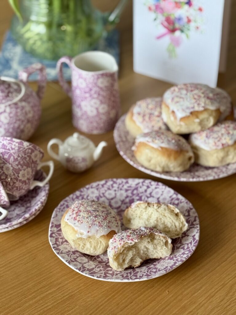 Spring seems like it’s ALMOST here in England, with lighter nights and mornings – and with that, my thoughts turn to Mothering Sunday, and some baking, with these delectable Traditional Mothering Buns.